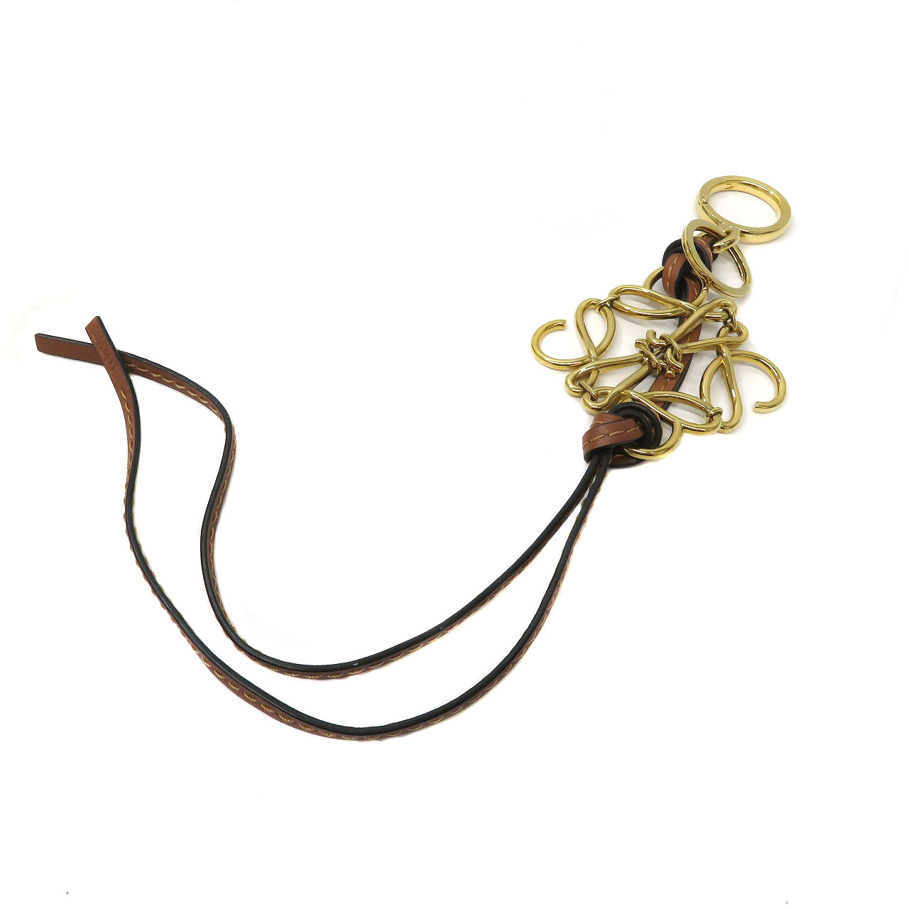 ロエベ Loewe C821232X01 アナグラムチャーム ゴールドカラー ブラウン キーホルダー 【中古】