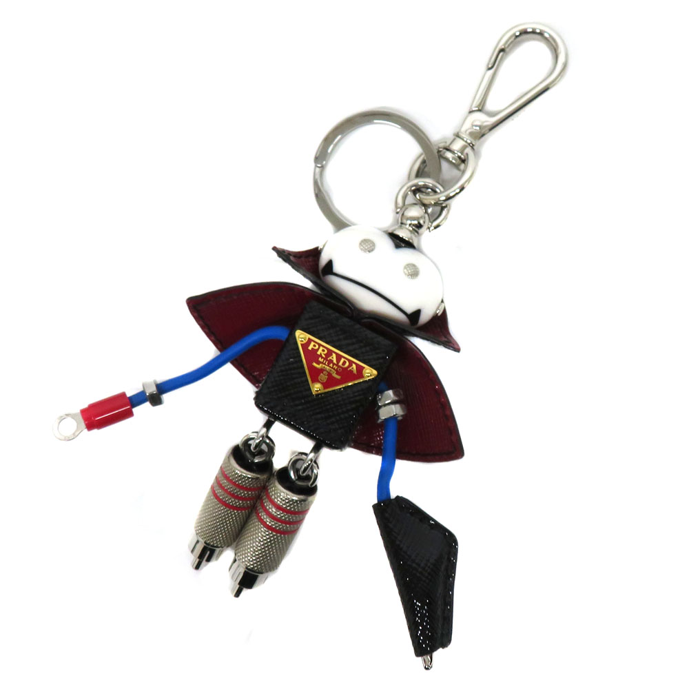 プラダ Prada 1TR017 ロボットサフィアーノレザーキーチェーンチャーム レザー 金属素材 ブラック レッド ブルー 【中古】