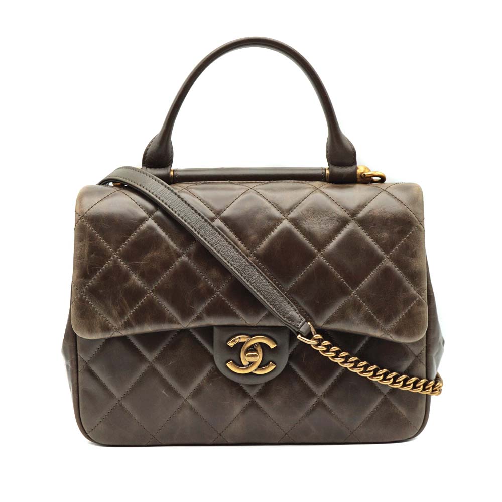シャネル CHANEL トップハンドル 2WAYバッグ ヴィンテージカーフ シワ加工 エイジング レディース ハンドバッグ ショルダー チェーン 23番台 【中古】