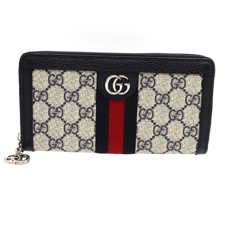 グッチ Gucci 523154 ジップアラウンドウォレット PVC レザー ブラック ベージュ ユニセックス【中古】