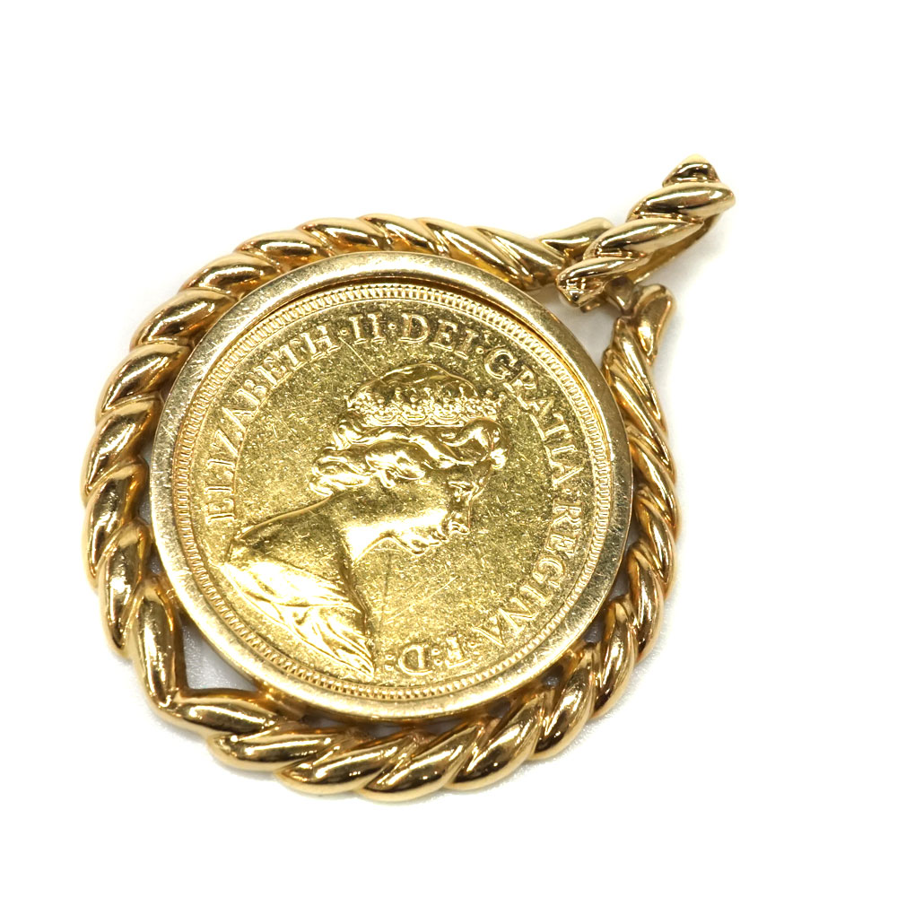K22 K18 22金 18金 イエローゴールド K18枠ソブリン金貨 ペンダントトップ【中古】