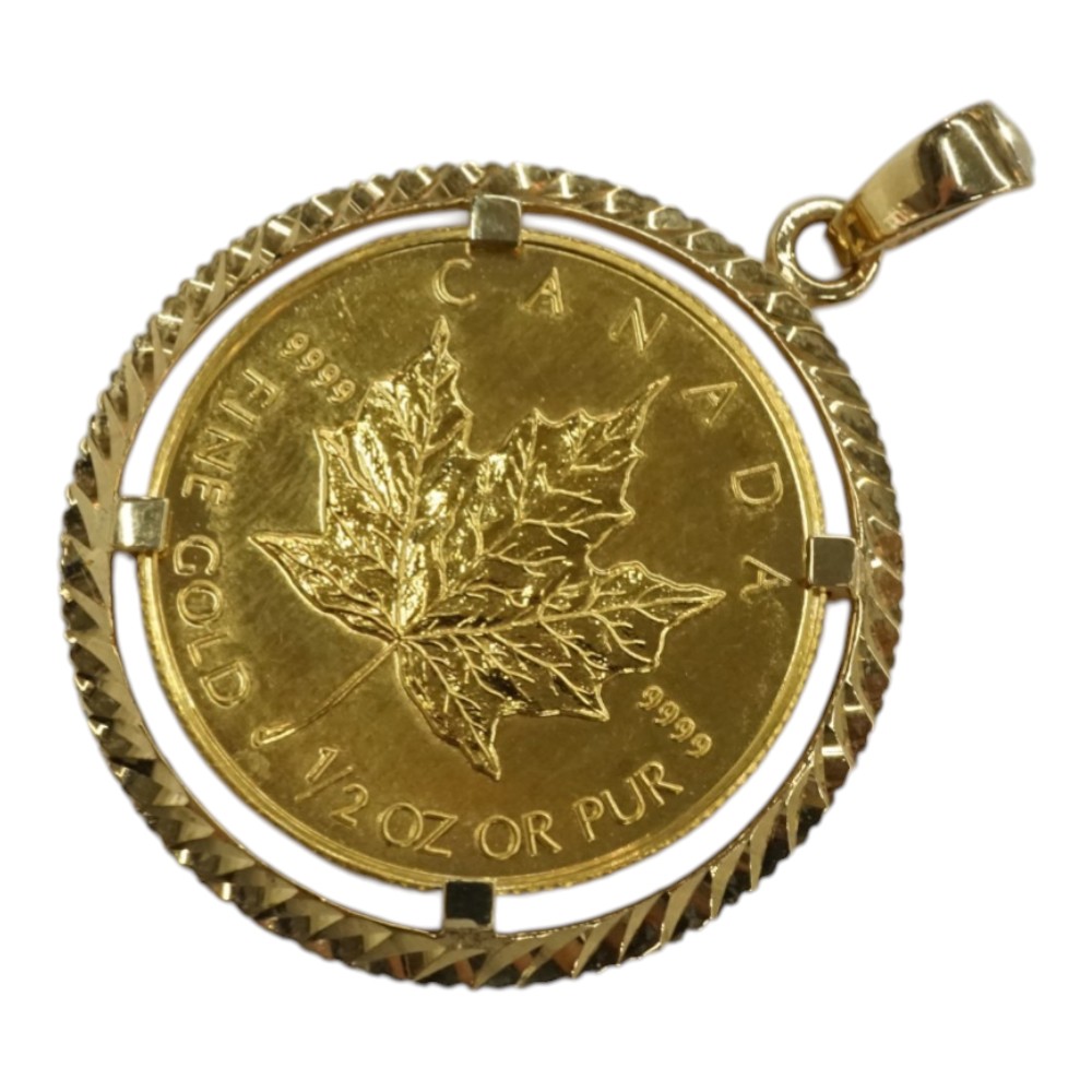 K24 K18 24金 18金 イエローゴールド 1/2ozメープルリーフコイントップ ペンダントトップ【中古】