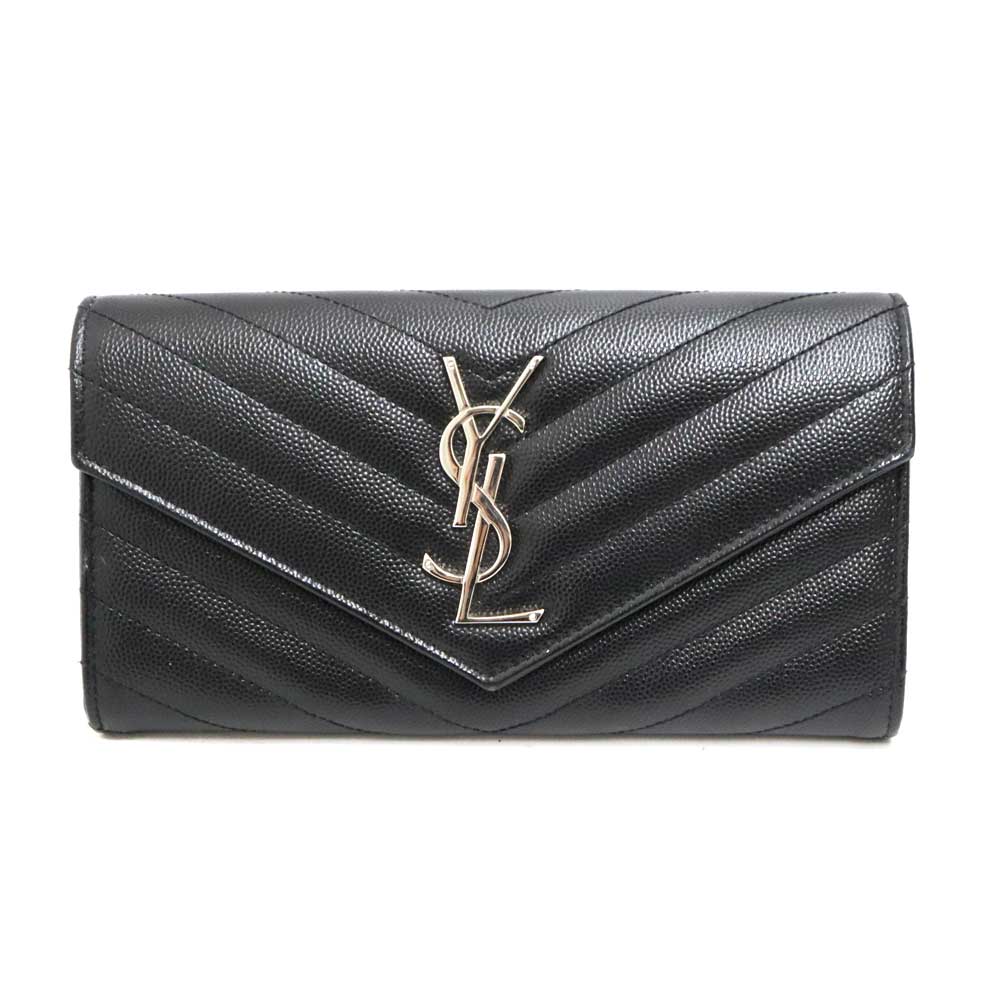 イヴサンローラン Saint laurent 372264 ラージフラップウォレット 長財布 レディース レザー ブラック【中古】