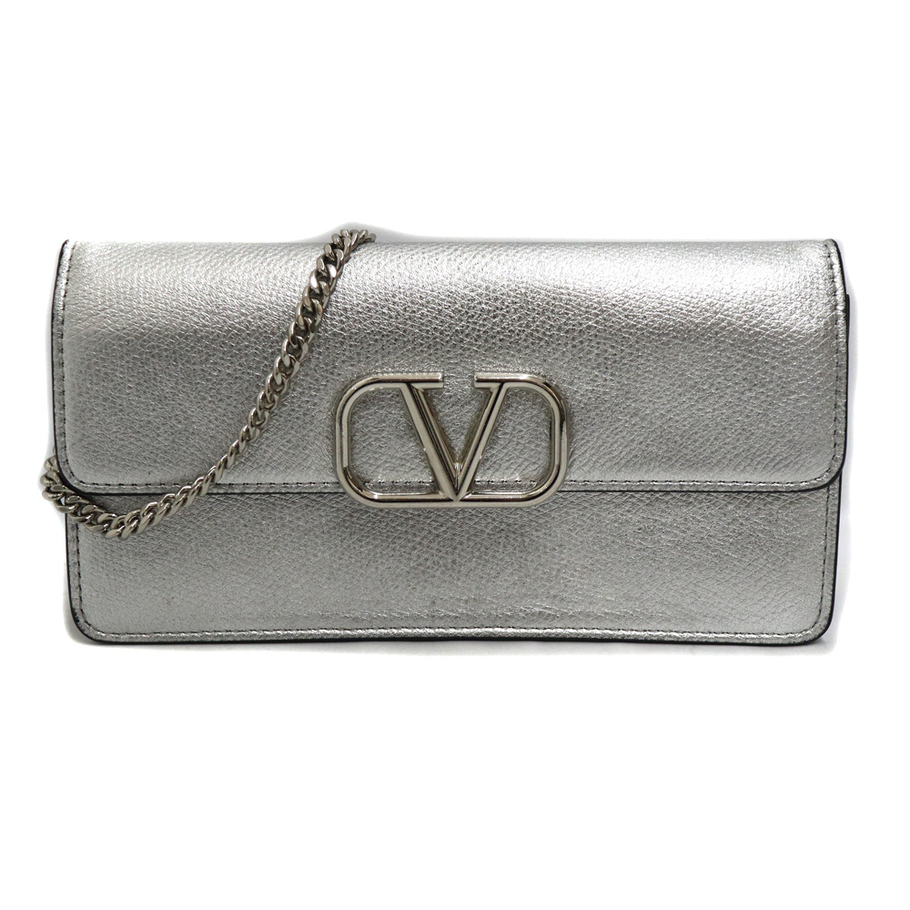 ヴァレンティノ Valentino チェーンウォレット 財布 レディース レザー シルバー【中古】
