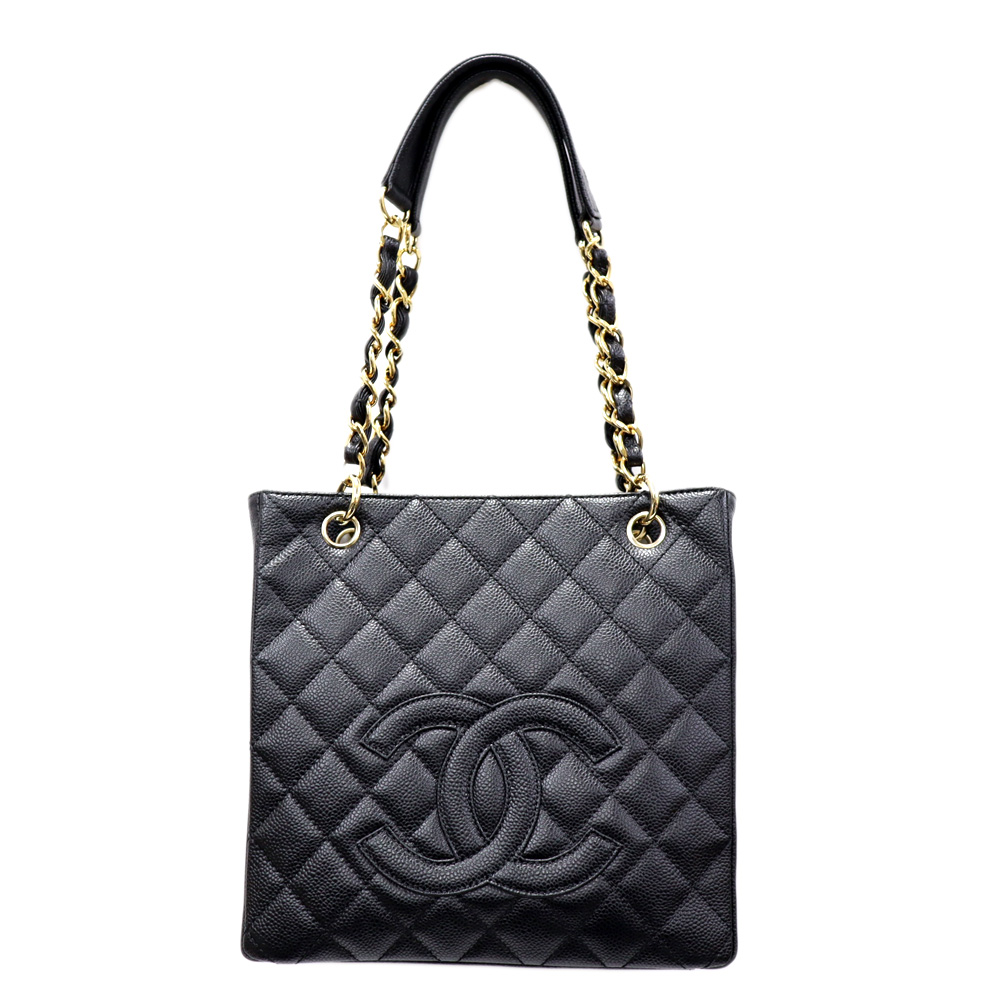 シャネル Chanel A50994 PSTチェーントート キャビアスキン レディース ブラック ゴールド【中古】