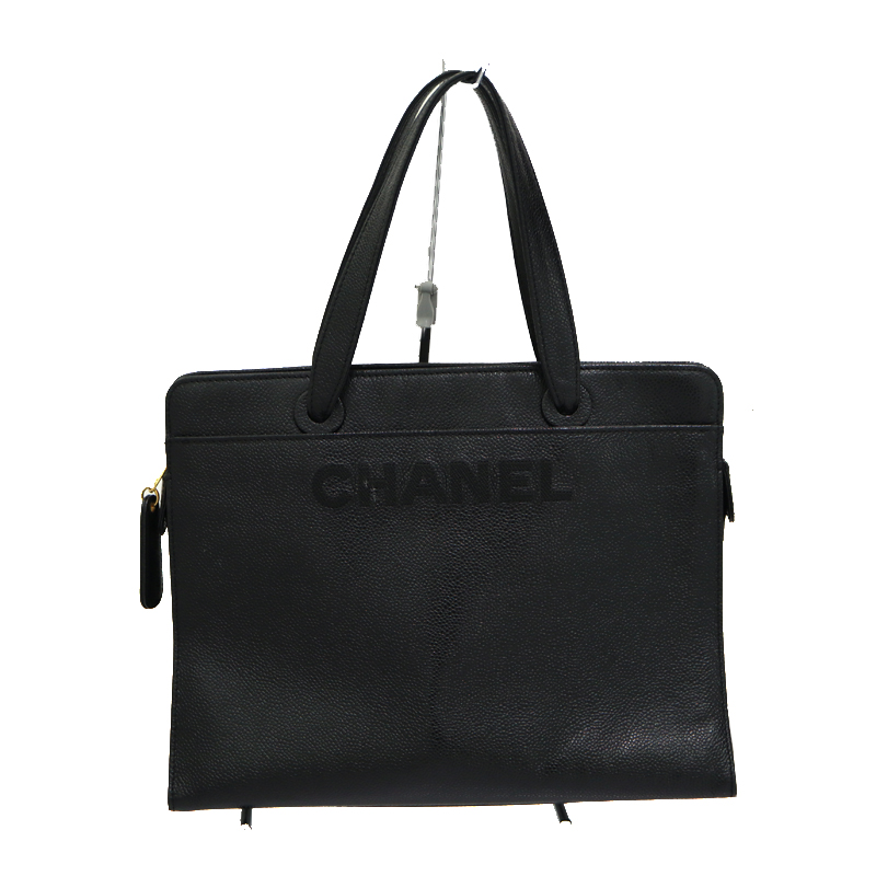 シャネル Chanel ロゴ ハンドバッグ レディース レザー キャビアスキン ブラック 【中古】