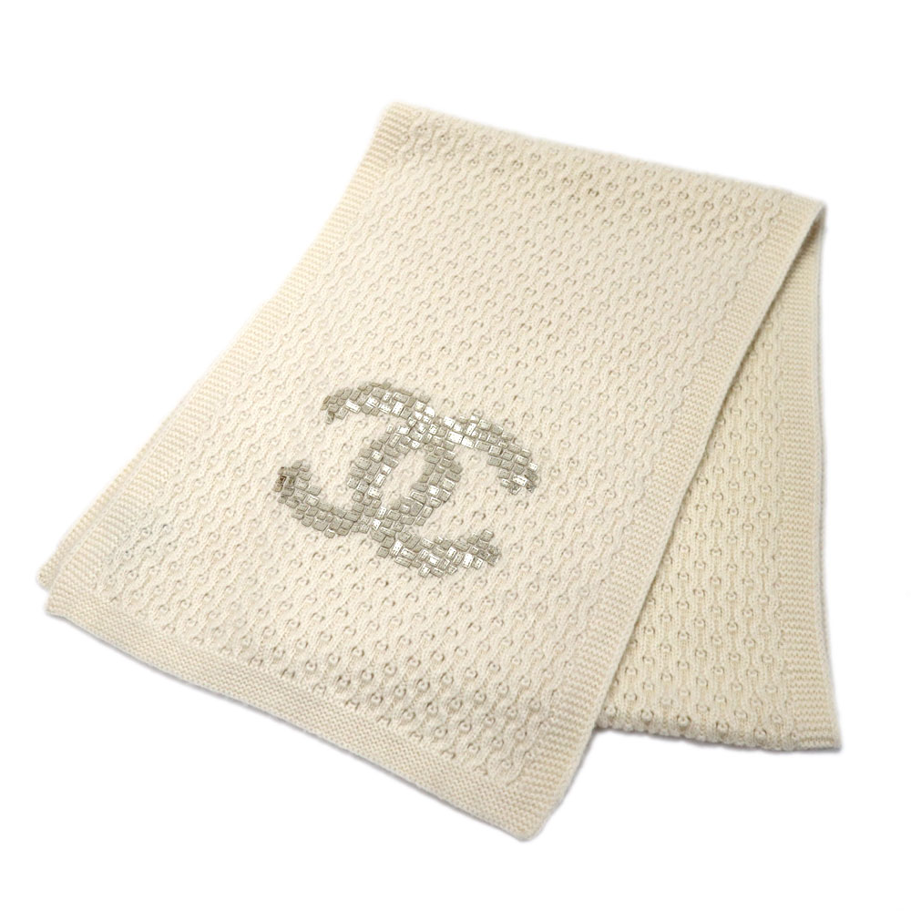 シャネル Chanel ココマークマフラー カシミヤ×ビジュー アイボリー レディース【中古】