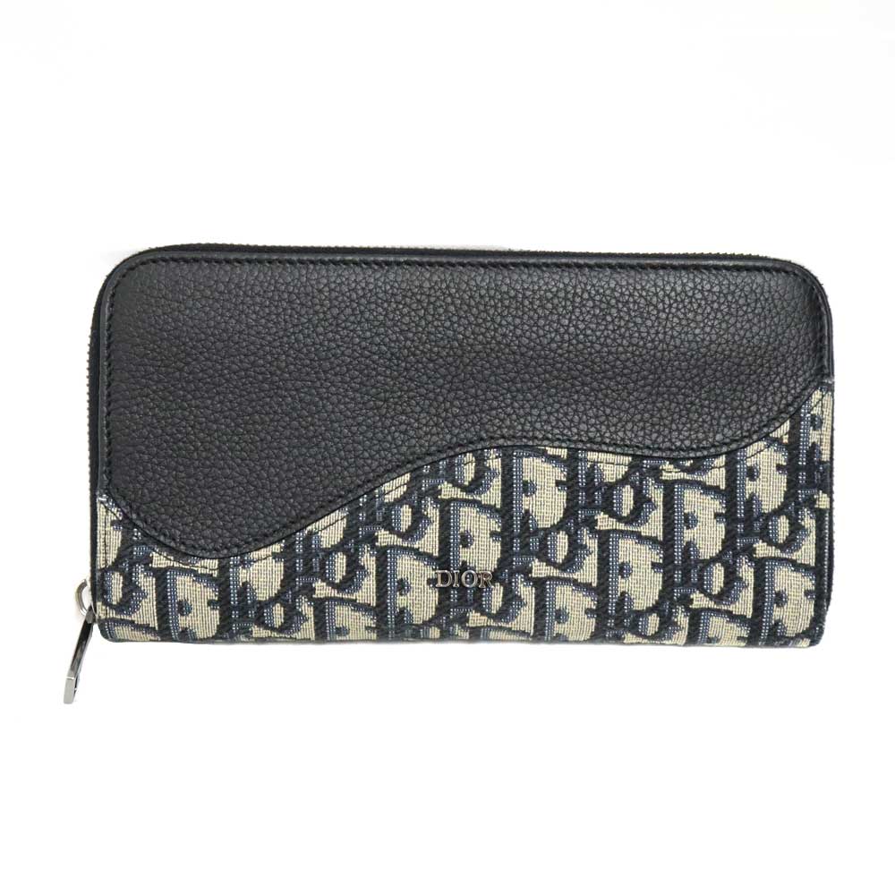 ディオール Dior 10.B0.0243 ラウンドファスナー財布 ユニセックス レザー キャンバス ブラック系【中古】