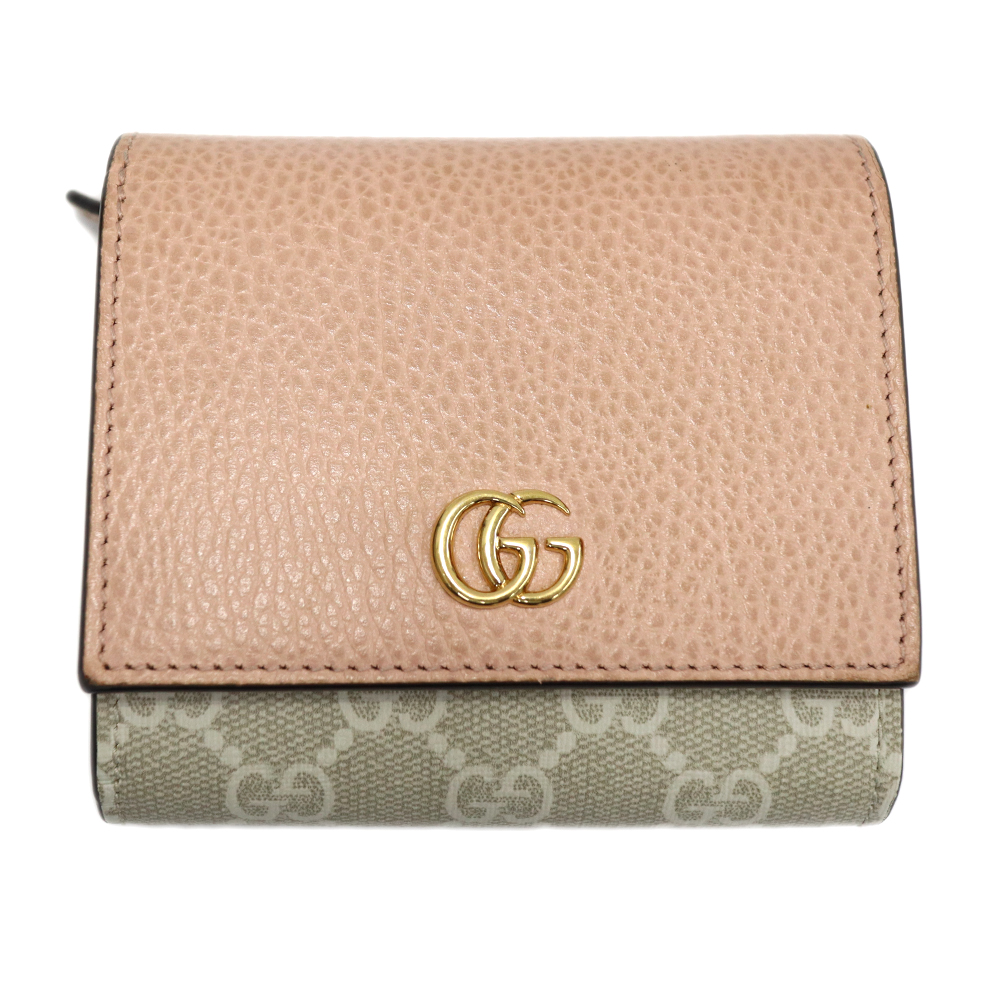 グッチ Gucci 598587 ダブルG バイカラー ミディアム ウォレット 二つ折り ベージュ×ピンク キャンバス×レザー レディース【中古】