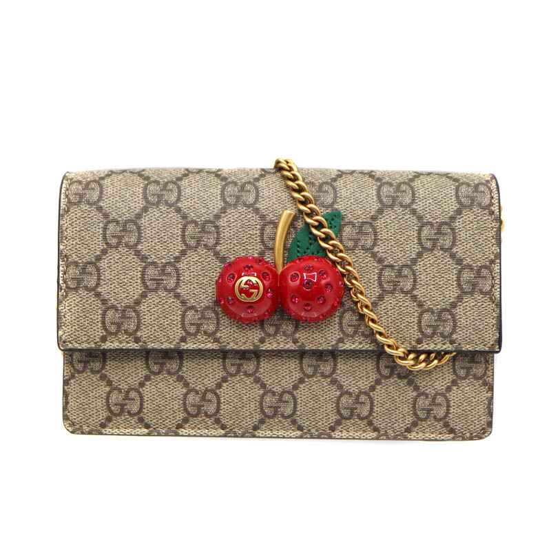 グッチ GUCCI 481291 チェリー付ミニバッグ GGスプリーム ショルダーバッグ PVC ベージュ レディース【中古】