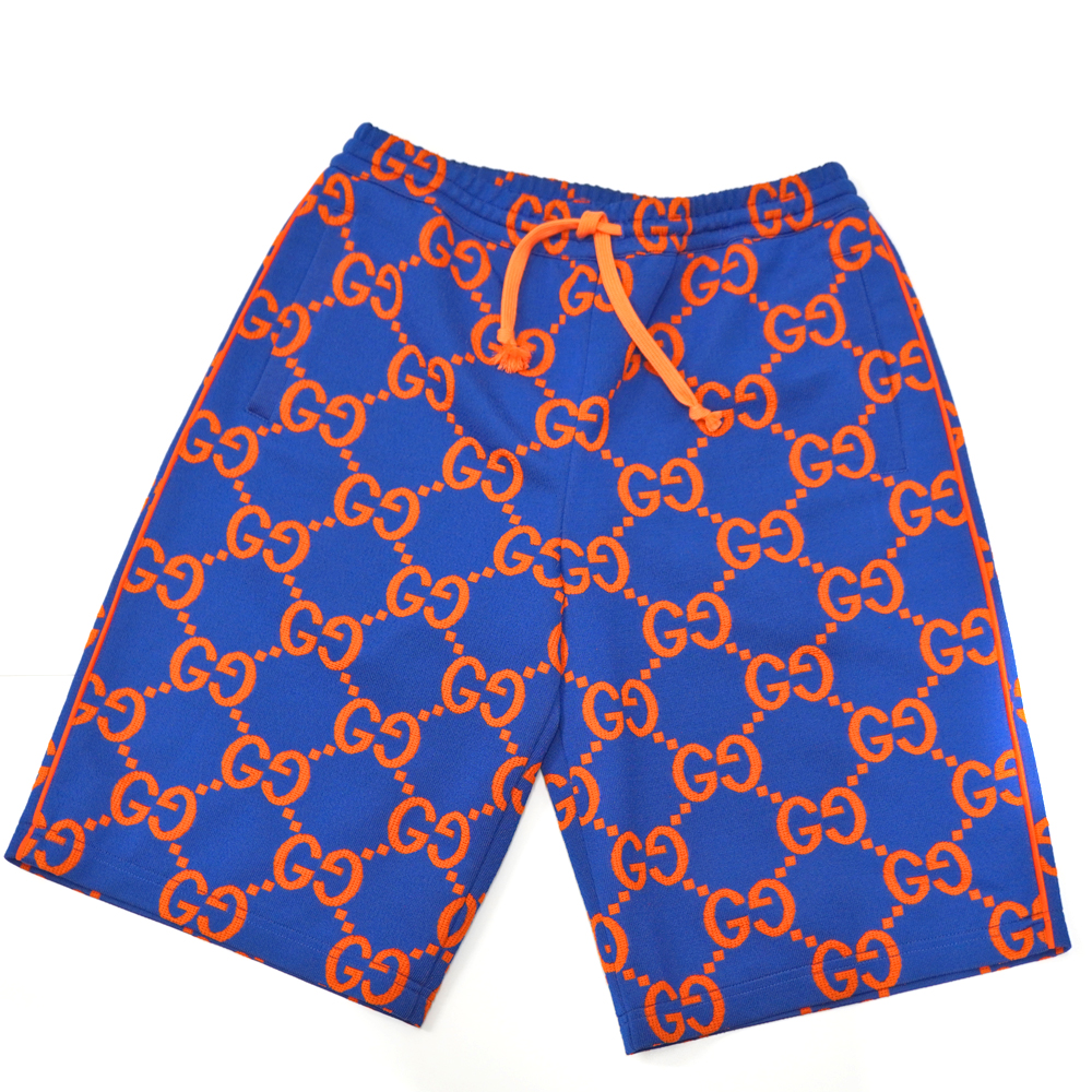GUCCI CA37394 GGハーフパンツ ブルー×オレンジ ロゴ メンズ 【中古】