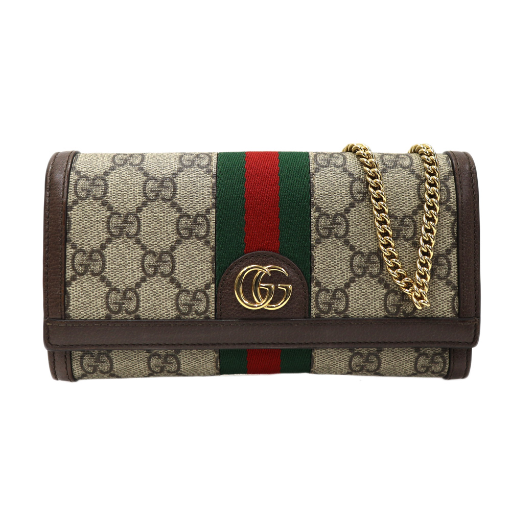 グッチ Gucci 772309 チェーン付きコンチネンタルウォレット GGスプリームキャンバス レディース ベージュ【中古】