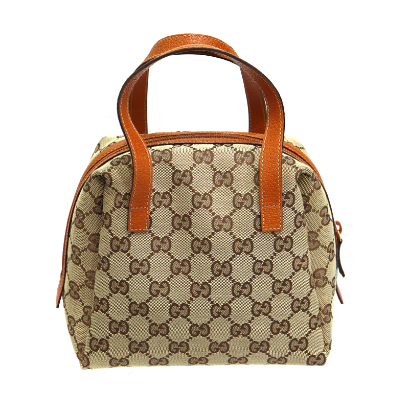 グッチ GUCCI 124542 ハンドバッグ キャンバス レザー ベージュ ブラウン GG レディース【中古】