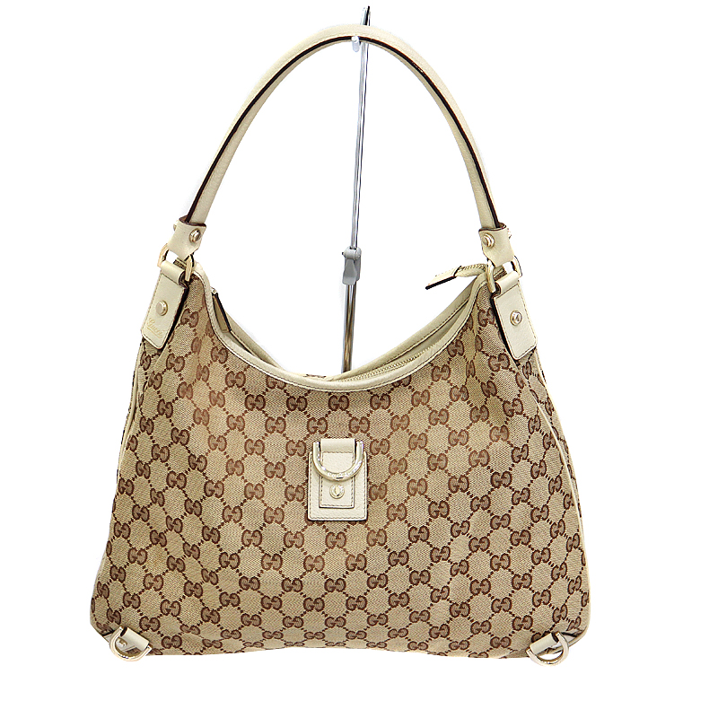 グッチ GUCCI 130737 ショルダーバッグ キャンバス レザー ベージュ ブラウン GG レディース【中古】