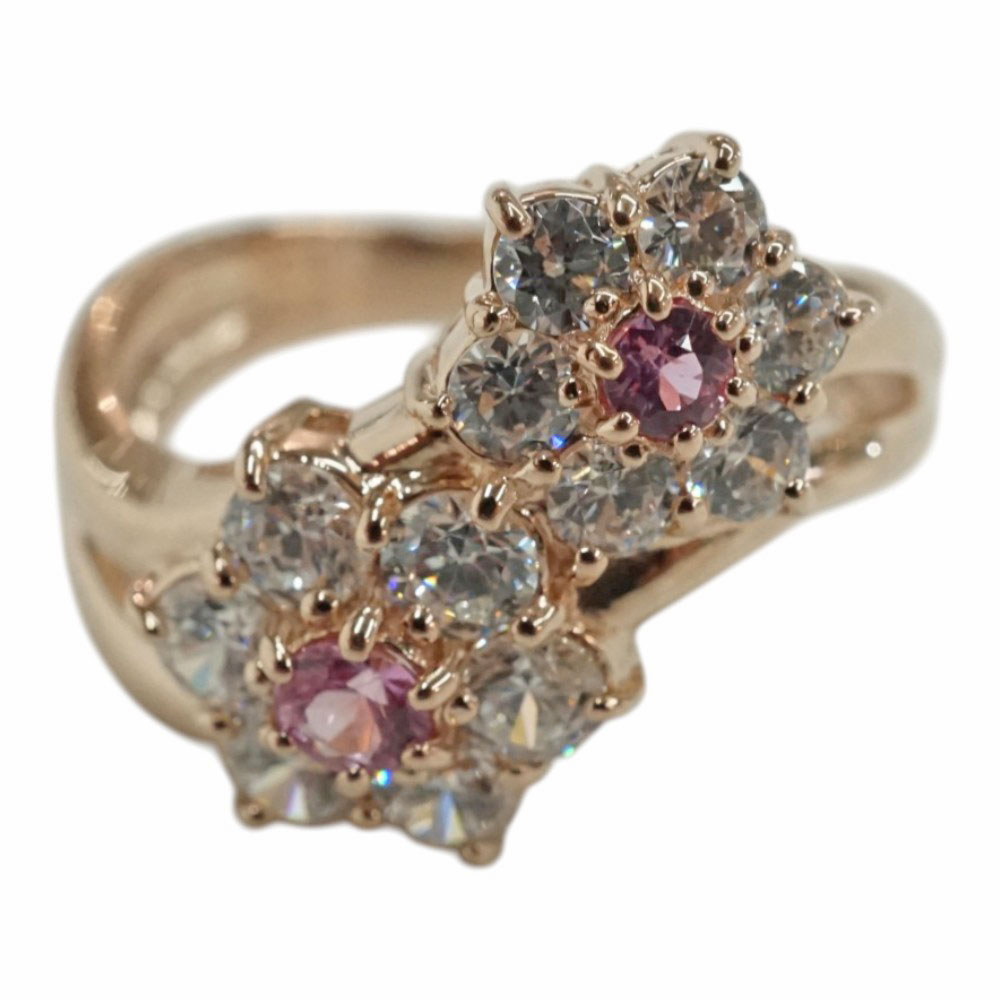 K10PG ピンクゴールド マルチストーンリング フラワーモチーフ 【中古】