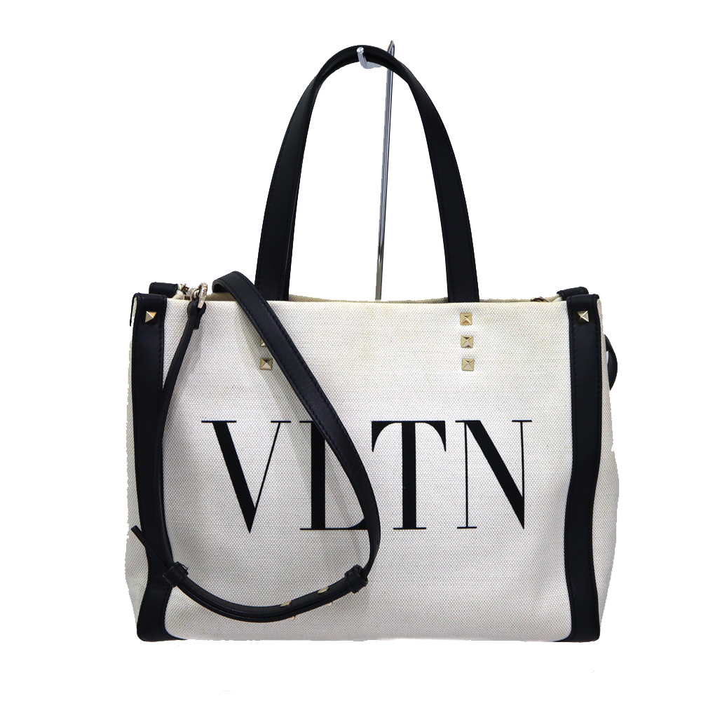 ヴァレンティノ VALENTINO VLTN ロックスタッズ 2WAYトート キャンバス レディース 【中古】