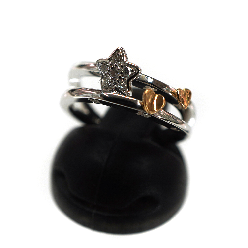 K18WG K18PG ホワイトゴールド ピンクゴールド リング 指輪 ダイヤモンド0.06ct【中古】