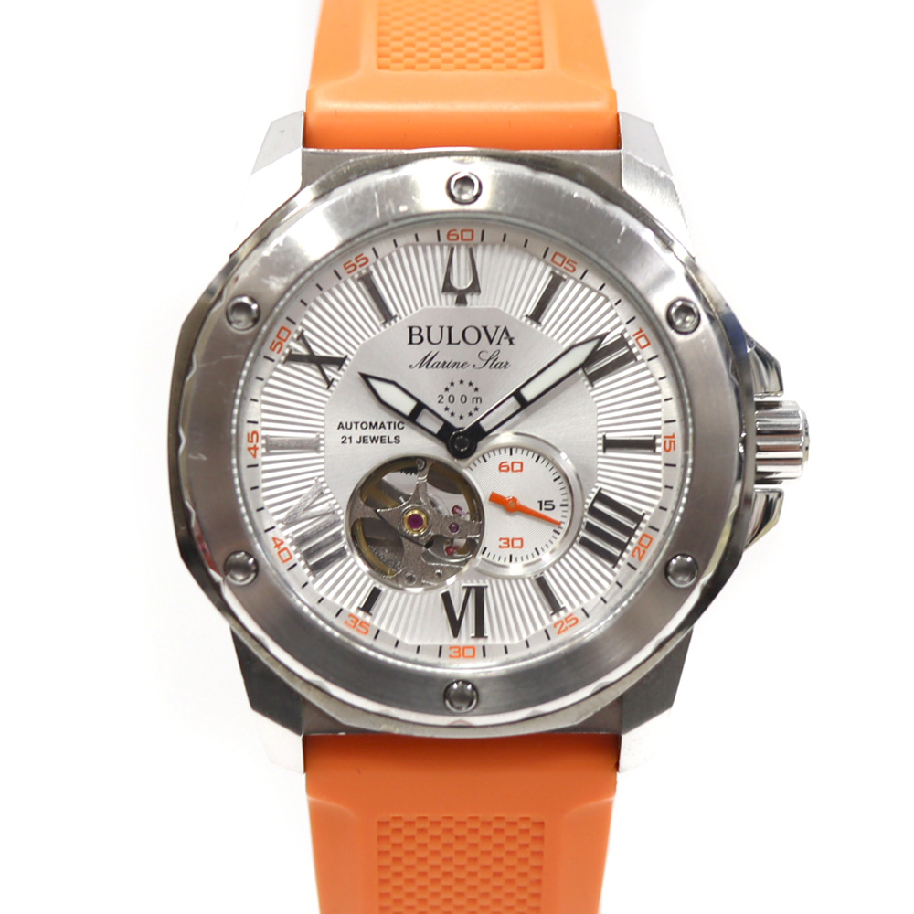 ブローバ Bulova 98A226 マリンスター オレンジ スケルトン メンズ 腕時計 【中古】