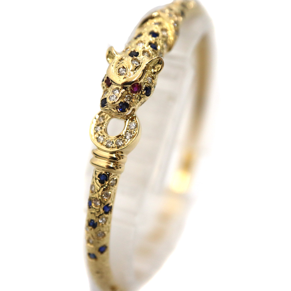 K18YG 18金イエローゴールド パンサーバングル サファイア ルビー ダイヤモンド バングル レディース ゴールド【中古】