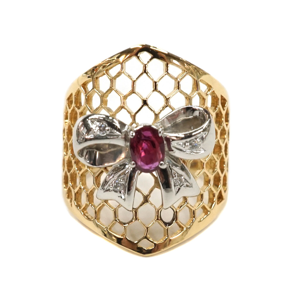 K18 Pt900 18金 プラチナ900 リング 指輪 ダイヤモンド:0.03ct 色石 0.27ct【中古】
