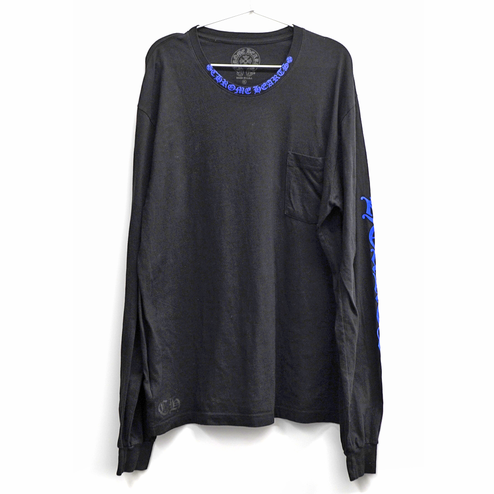 クロムハーツ Chrome hearts ロングスリーブTシャツ ブルーロゴ 長袖 服 ブラック【中古】
