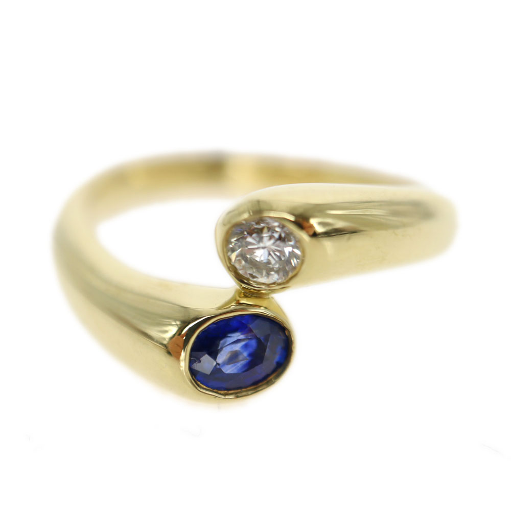 K18 18金 サファイア ダイヤモンドリング レディース ゴールド【中古】