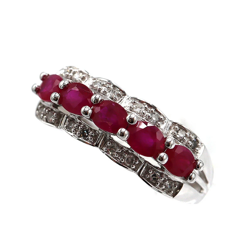 K14WG 14金 ホワイトゴールド ルビー/ダイヤ付リング 指輪 ジュエリー レディース【中古】