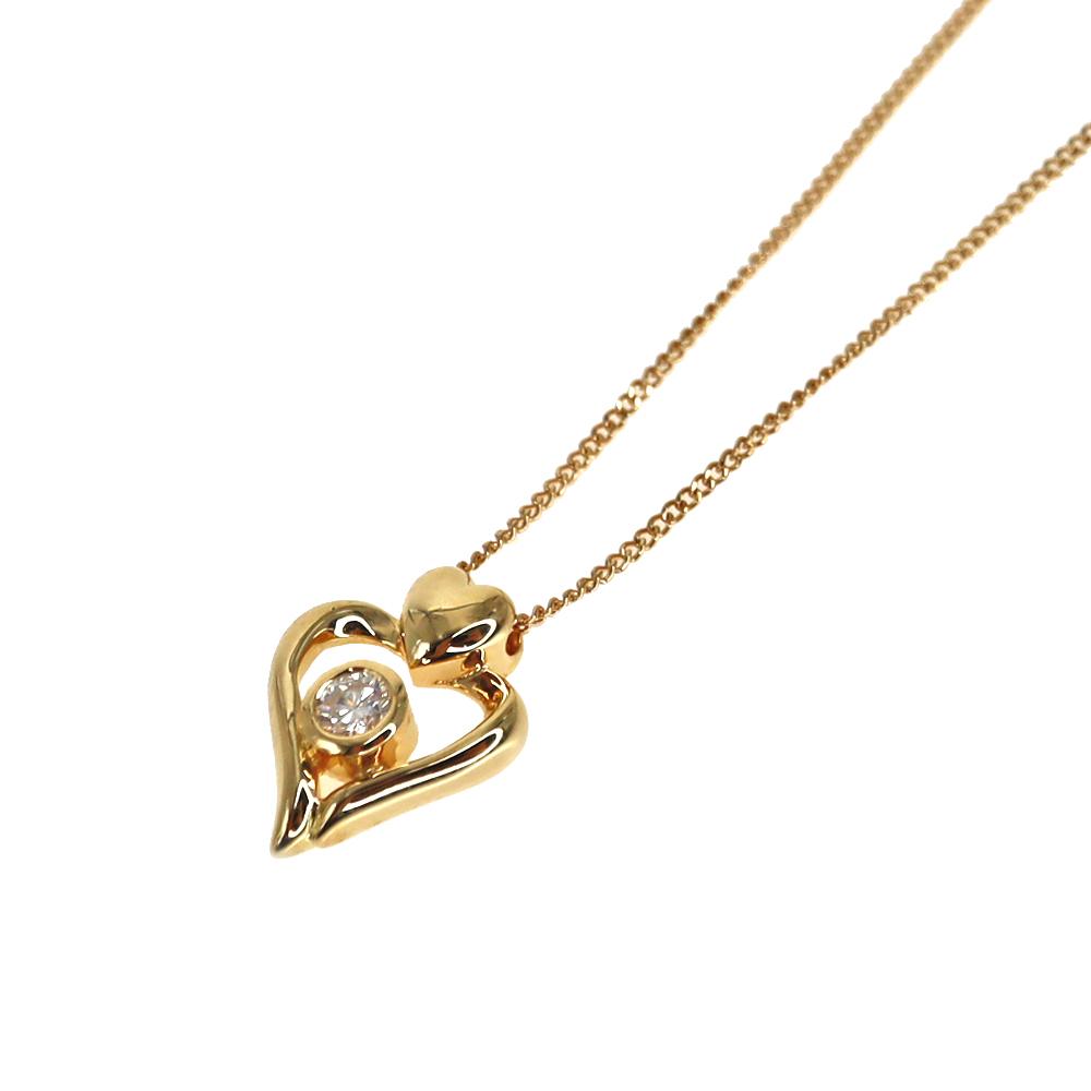K18YG 18金 ダイヤモンド ハートデザイン ネックレス レディース ゴールド【中古】