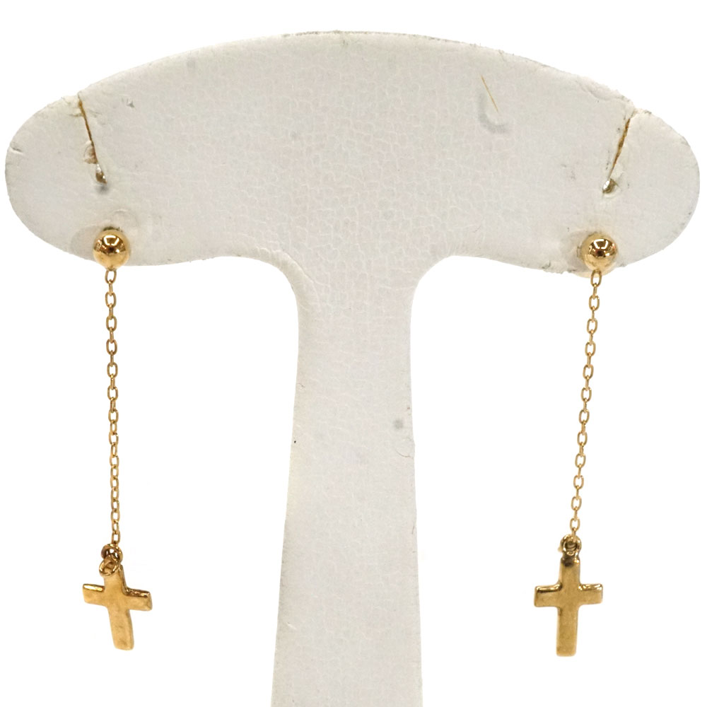 K18 18金 イエローゴールド クロス付きピアス 【中古】