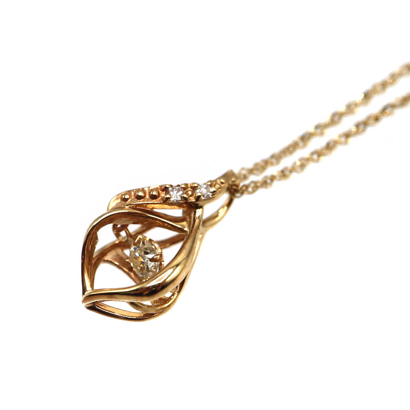 K10 10金 ダイヤ付ネックレス ダイヤモンド レディース ピンクゴールド 金【中古】