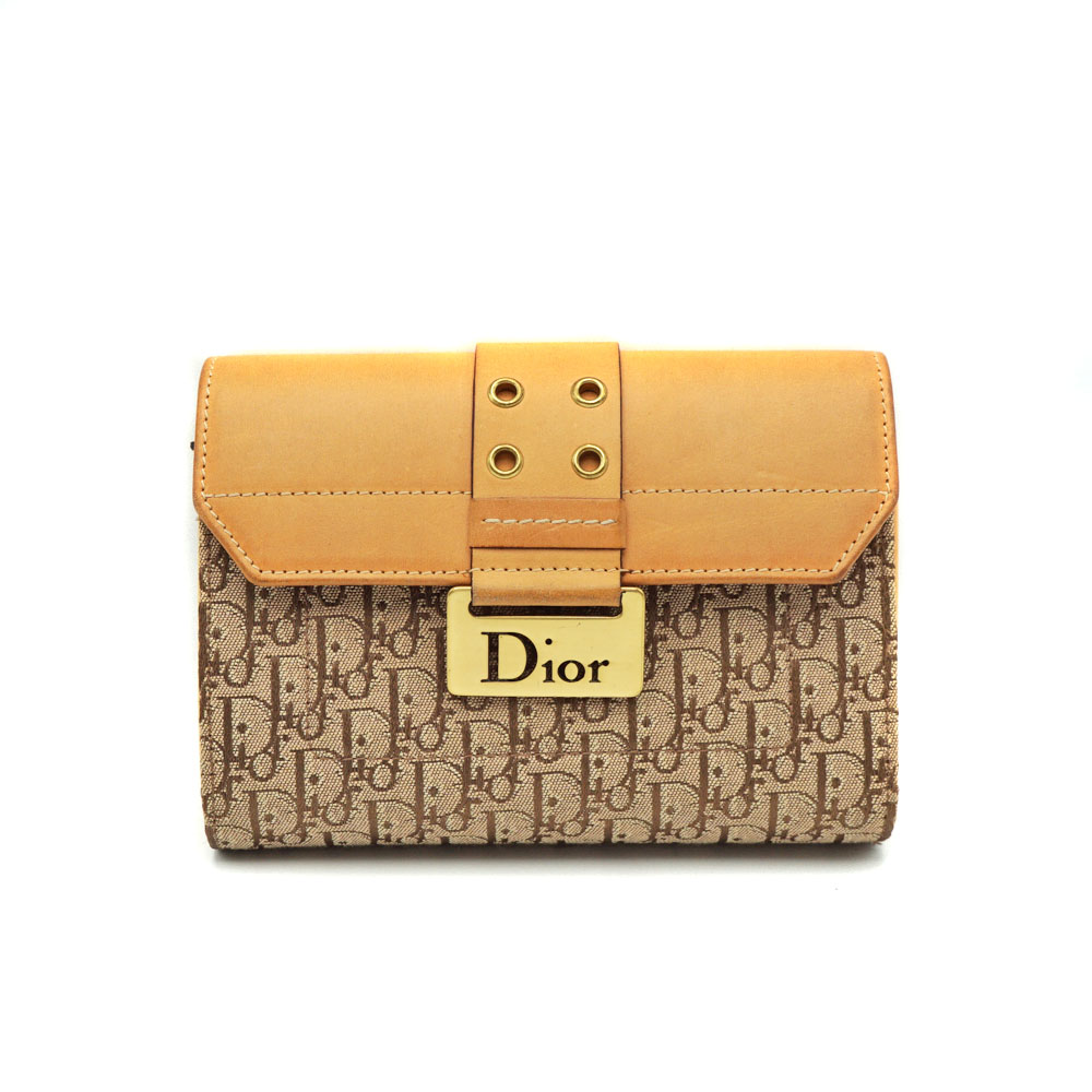 クリスチャンディオール Christian Dior 三つ折り財布 トロッター キャンバス ベージュ レディース 【中古】