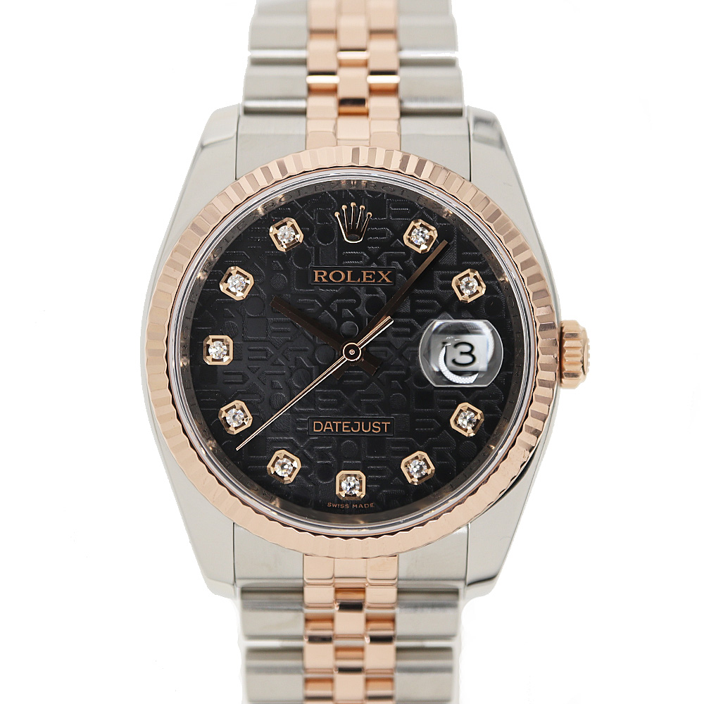 ロレックス Rolex 116231G デイトジャスト コンピューター ブラック 10Pダイヤ ピンクゴールド ステンレス メンズ【中古】