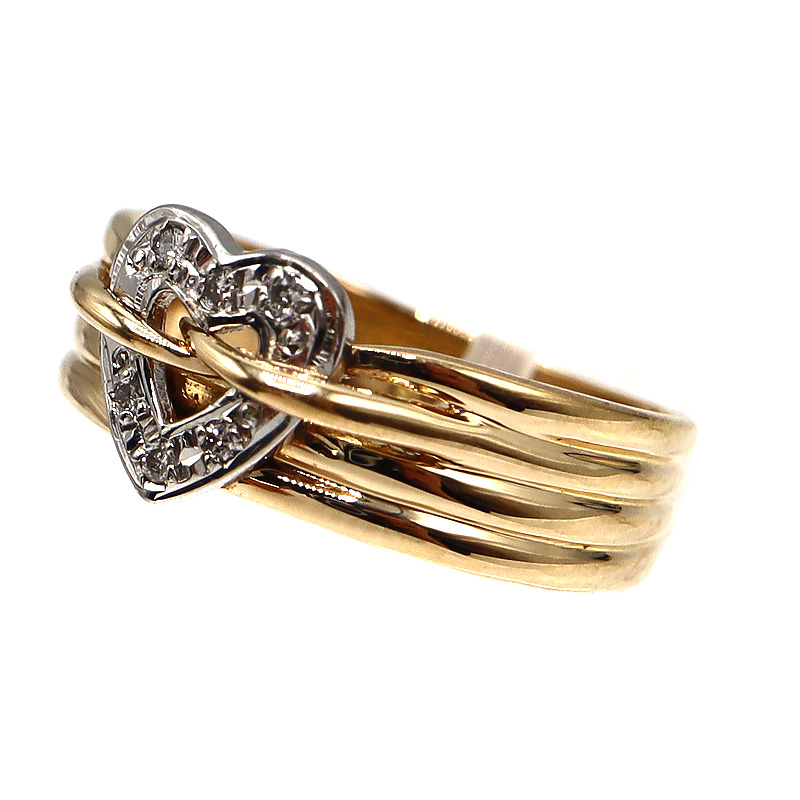 K18 Pt900 D0.04ctハートリング 指輪 イエローゴールド プラチナ ダイヤモンド レディース【中古】
