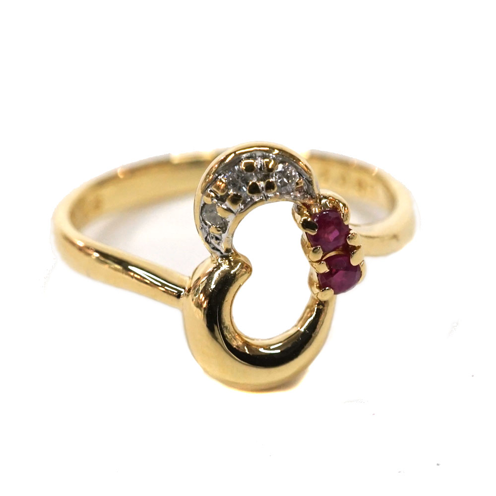 K18 ゴールド D0.09ctリング 18金 ダイヤモンド ハート ジュエリー【中古】