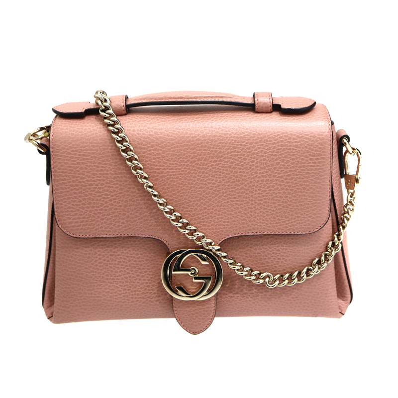 グッチ Gucci 501302 インターロッキングG チェーンショルダーバッグ ピンク レザー レディース【中古】