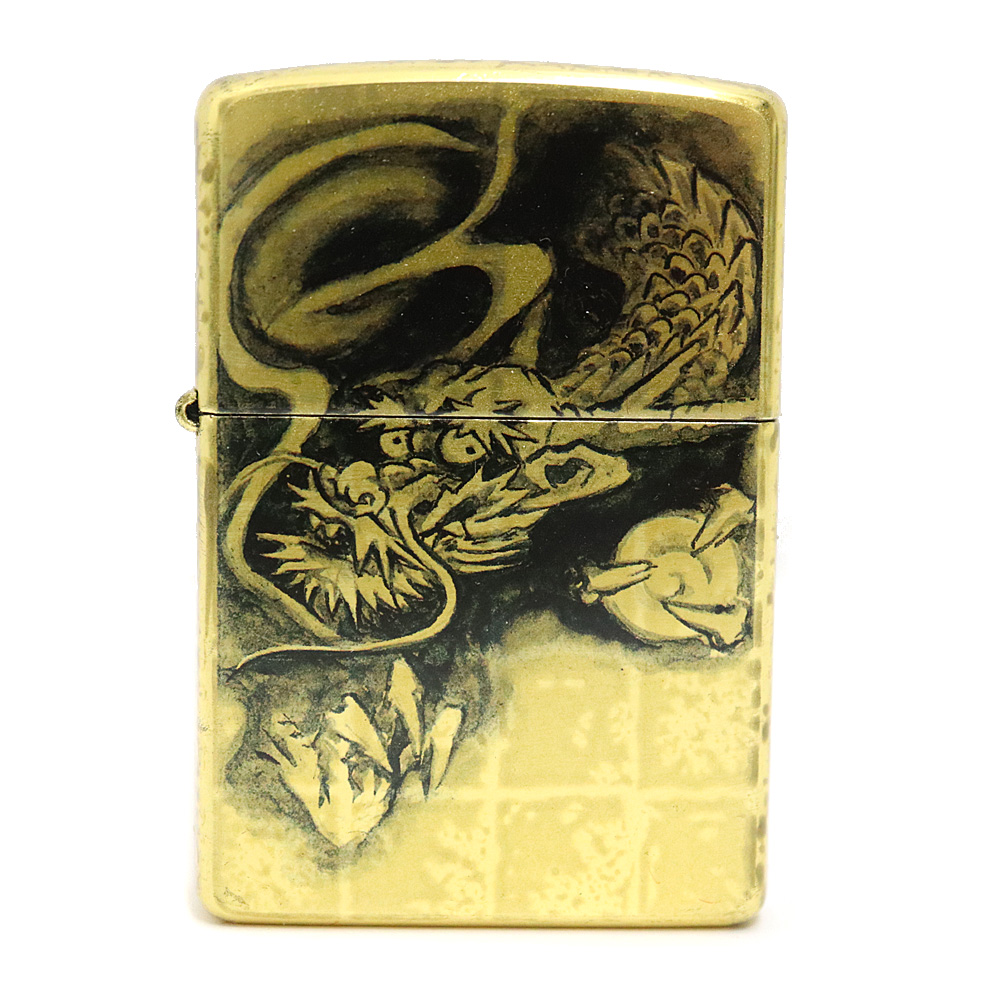 ジッポー Zippo ライター 墨絵 龍 メンズ 金属素材ゴールド【中古】