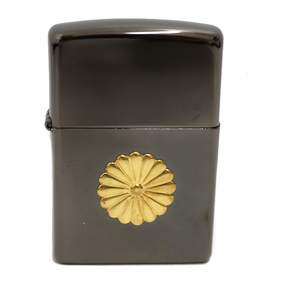 ジッポー Zippo ライター 菊紋 十六菊 浮彫り メンズ 金属素材 ブラック×ゴールド【中古】