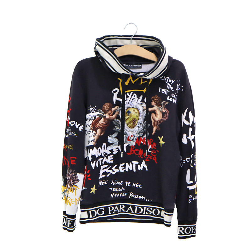 ドルチェアンドガッバーナ Dolce&Gabbana G9MR8T/FH703 グラフィックプリントパーカー ブラック パーカー アウター メンズ【中古】
