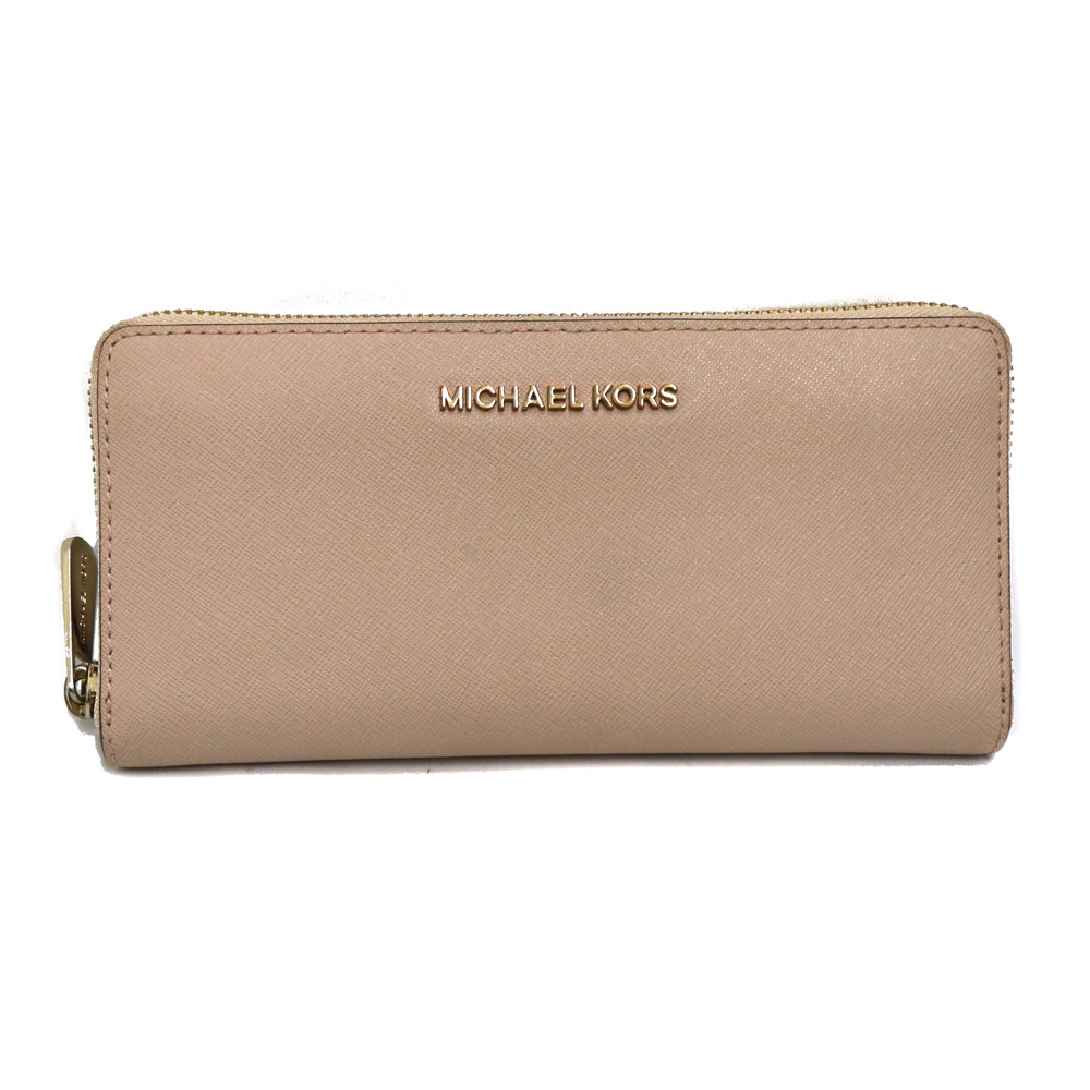 マイケルコース Michael kors 35H3GTVZ3L ラウンドファスナー財布 レディース PVC素材 ピンクベージュ【中古】