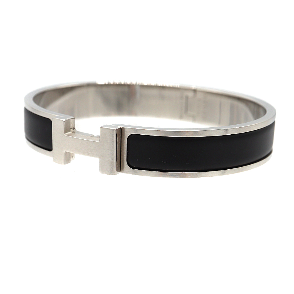 エルメス Hermes クリッククラックPM マットシルバー金具 ブラック バングル ブレスレット【中古】