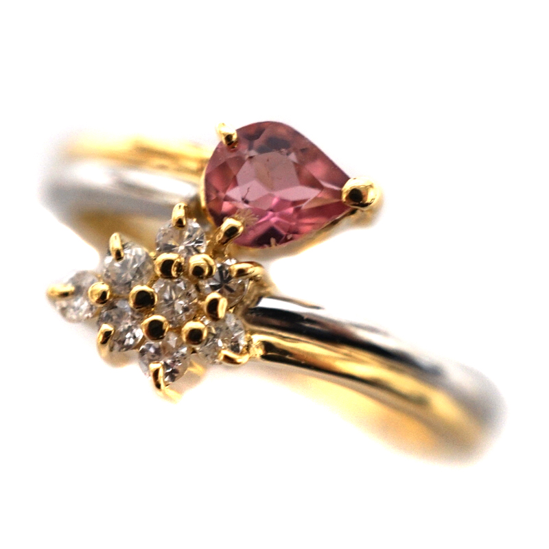 K18 Pt950 Pt0.16 ダイヤモンド付きリング ゴールド プラチナ ピンクトルマリン ダイヤモンド ジュエリー アクセサリー【中古】