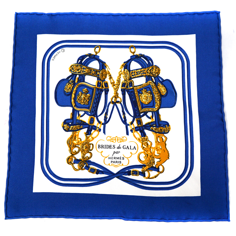 エルメス Hermes ポケットチーフ シルク100% ホワイト ブルー 【中古】