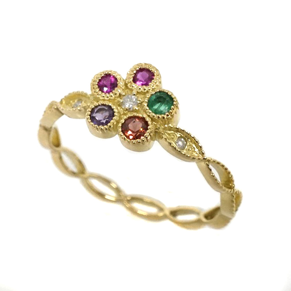 K18 ゴールド マルチカラーストーン リング フラワーモチーフ ジュエリー アクセサリー 【中古】