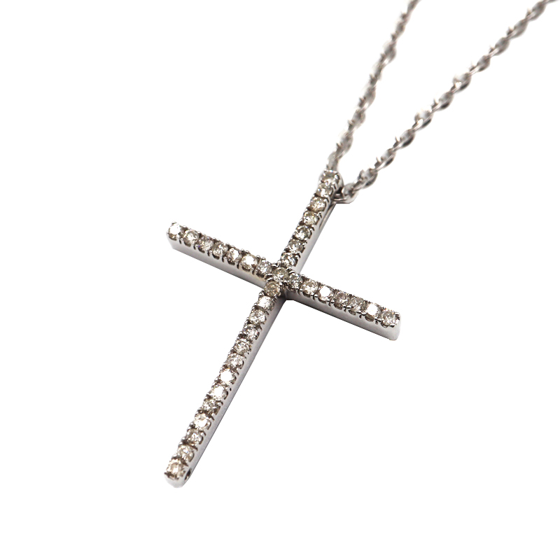 K18WG クロストップ ネックレス ホワイトゴールド ダイヤモンド レディース ジュエリー 【中古】
