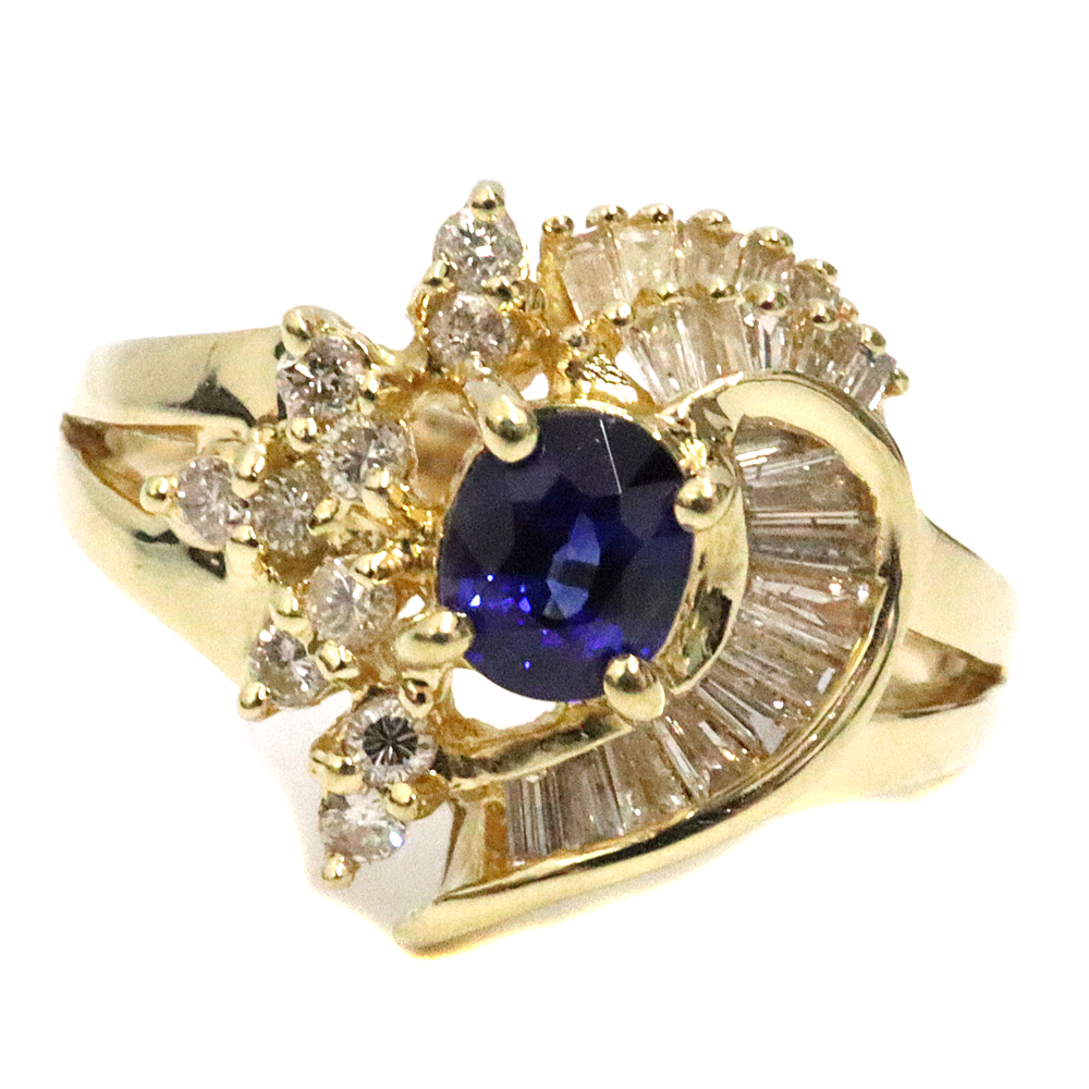K18 18金 ダイヤモンド ブルーサファイア リング 指輪 レディース イエローゴールド【中古】