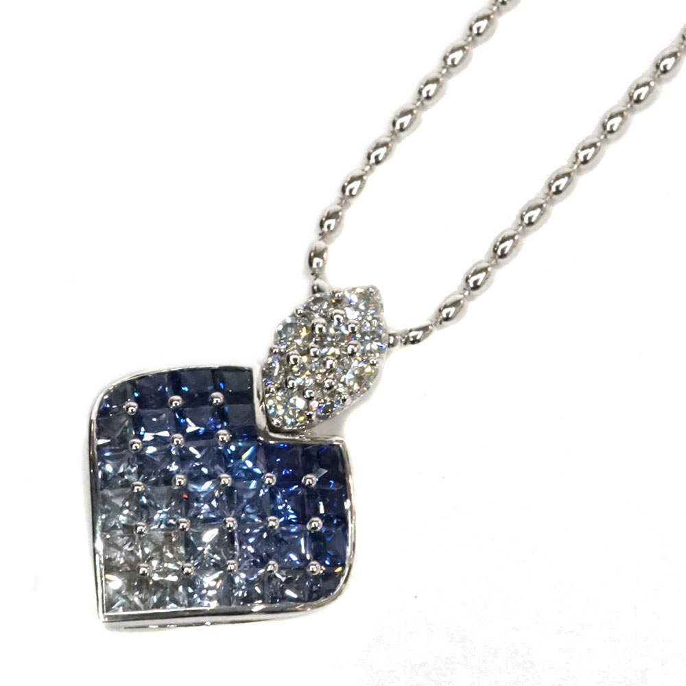 ジュネ Jeunet K18WG 18金ホワイトゴールド ネックレス ダイヤモンド0.30ct サファイア2.65ct【中古】