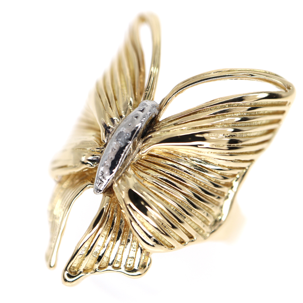 K18/Pt900 18金 プラチナ900 コンビ イエローゴールド 蝶々 リング【中古】