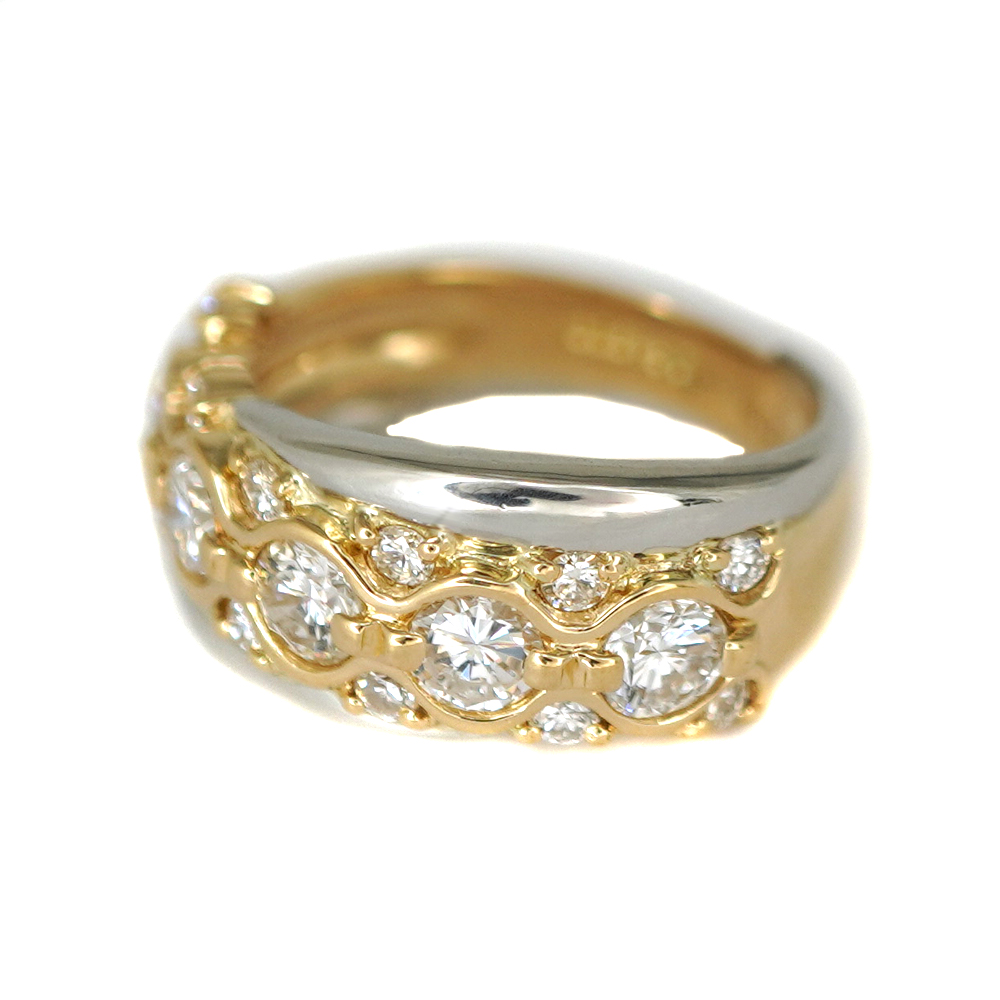K18/Pt900 ゴールド プラチナ ダイヤモンド1.08ctリング 【中古】