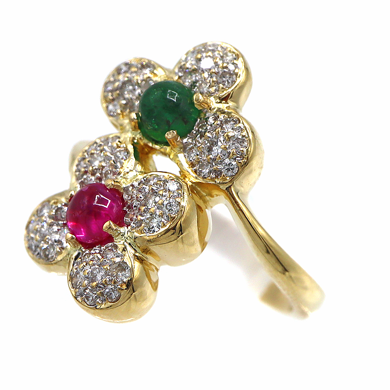K18 18金 D0.43/E0.33/R0.40ct ダイヤモンド エメラルド ルビーリング 指輪 ジュエリー レディース【中古】