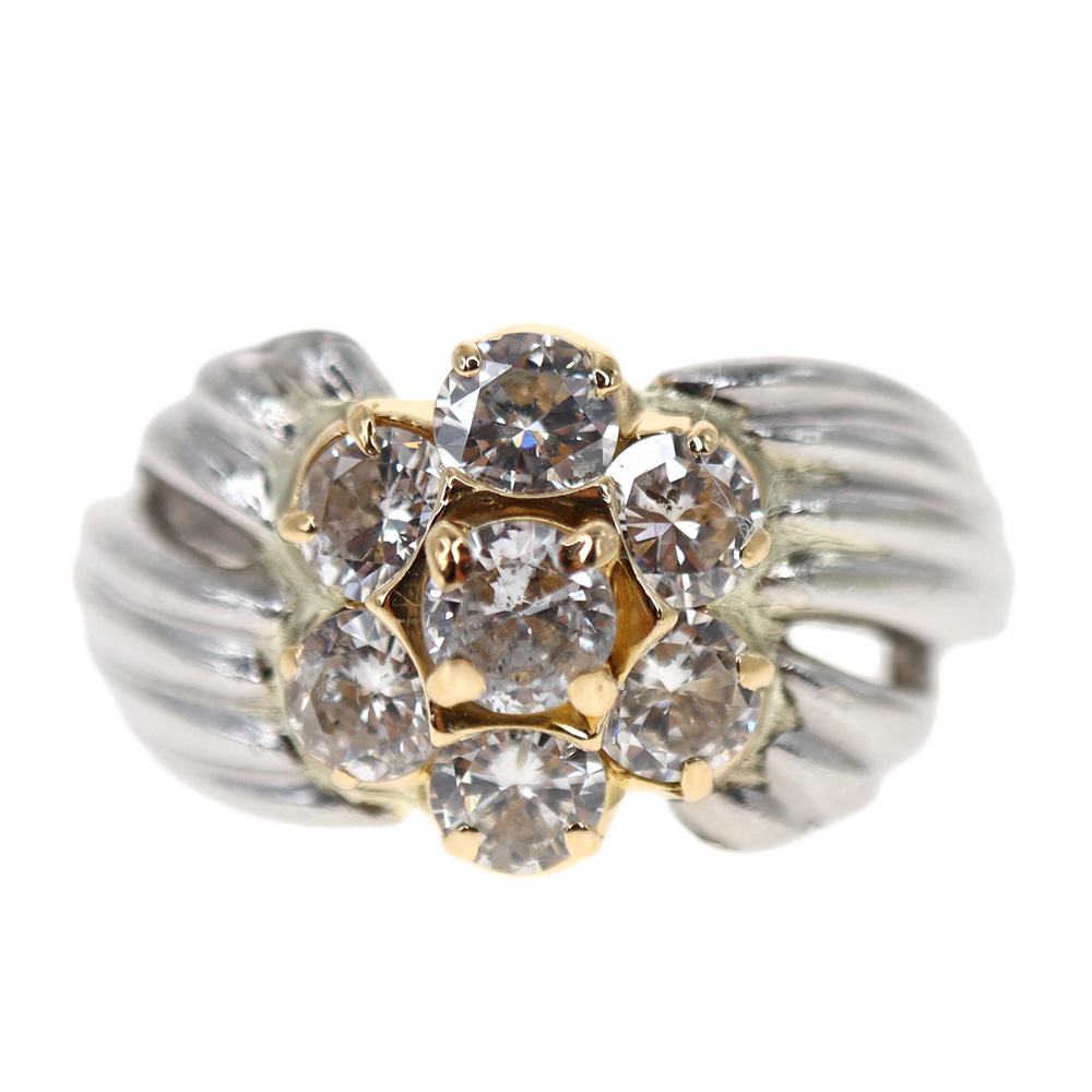 K18/Pt900 18金 プラチナ900 コンビ イエローゴールド ダイヤモンドリング【中古】